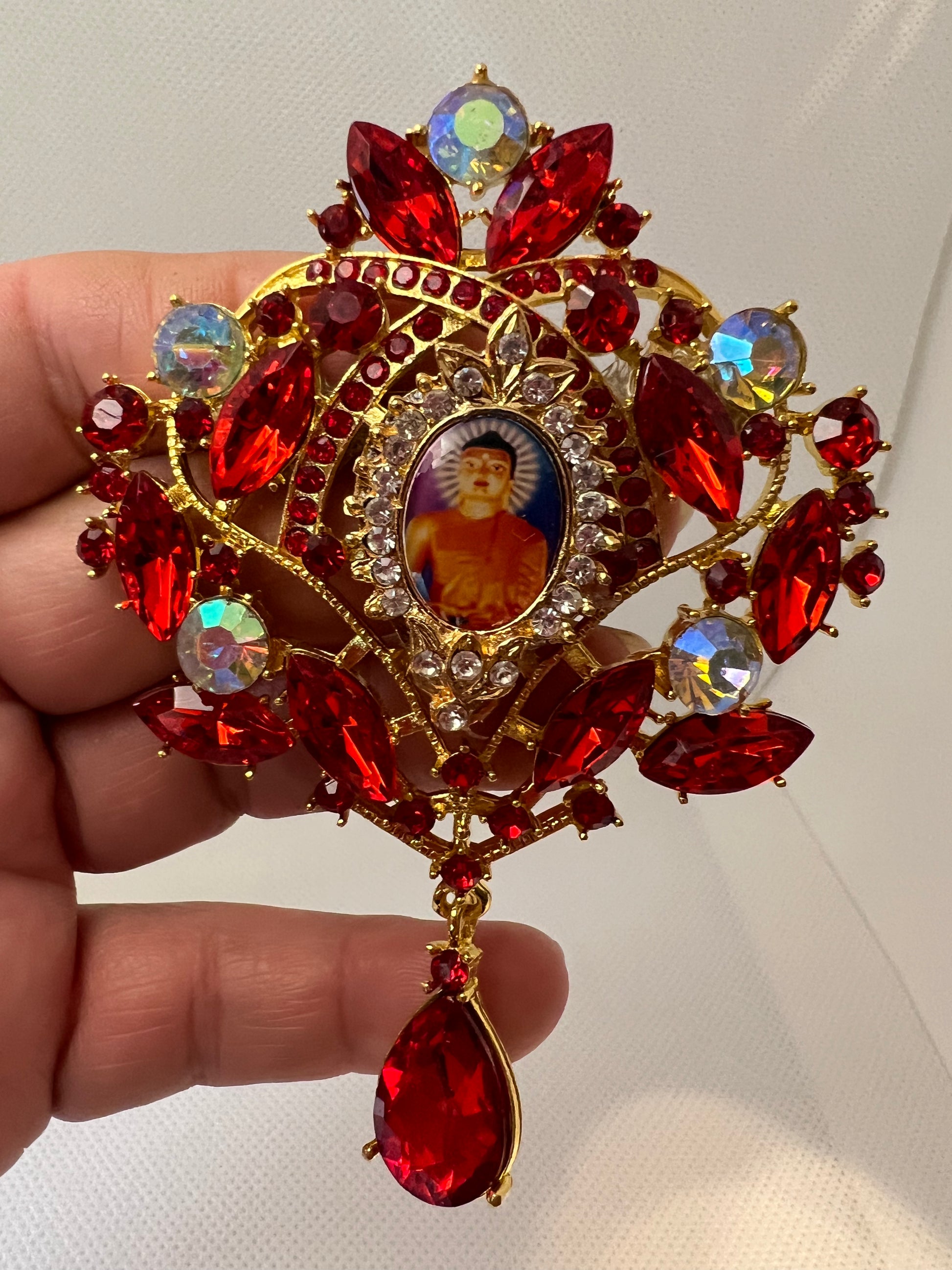 A beautiful Red Oval Teardrop Buddha Brooch Pin