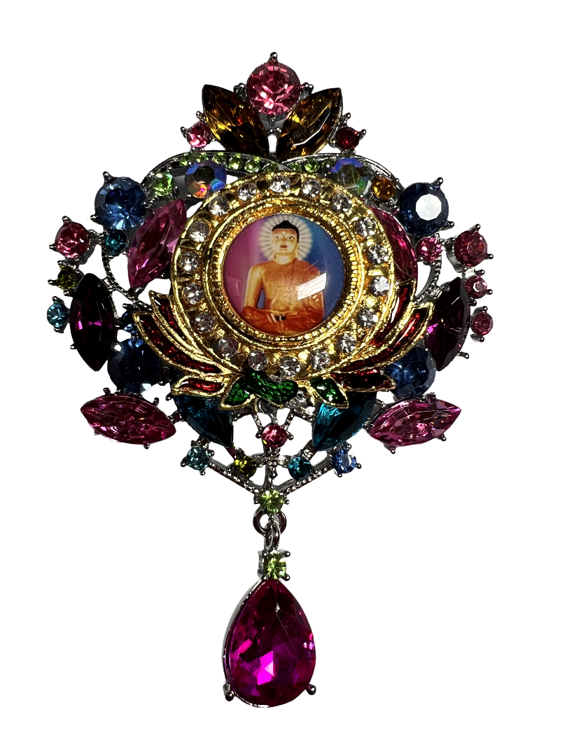 This exquisite Brooch Pin features a stunning Round Teardrop design adorned with intricate Colorful Flowers.